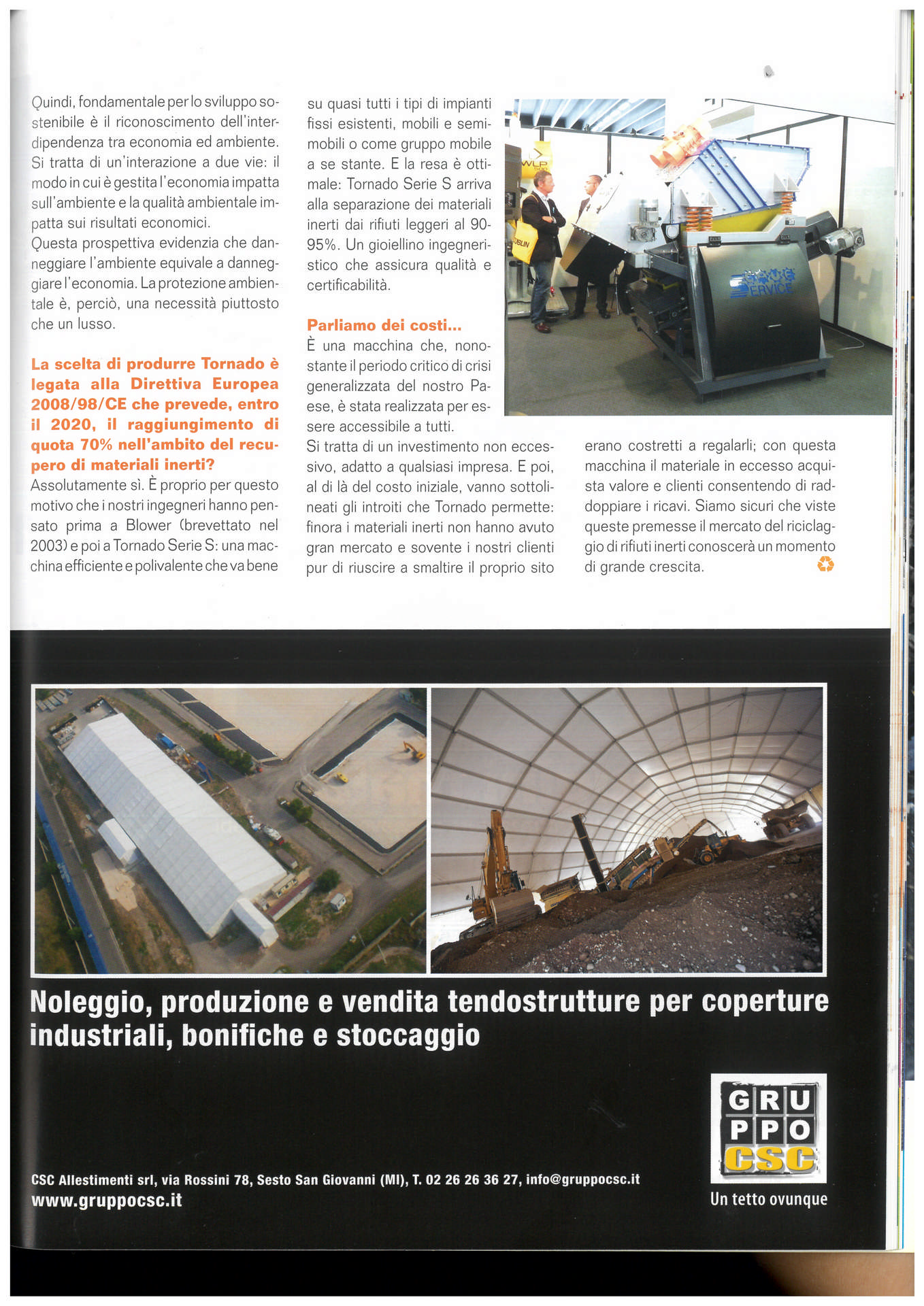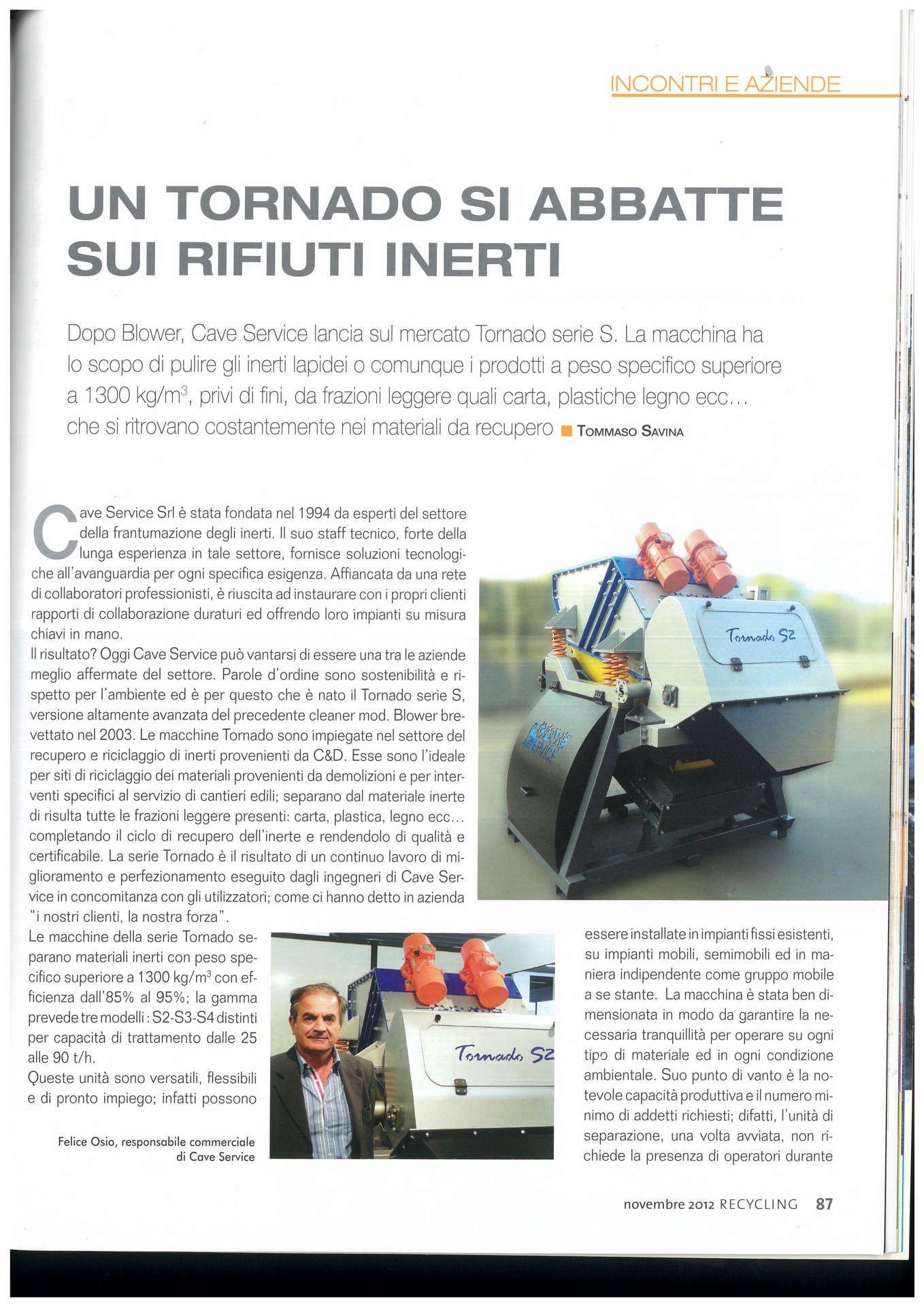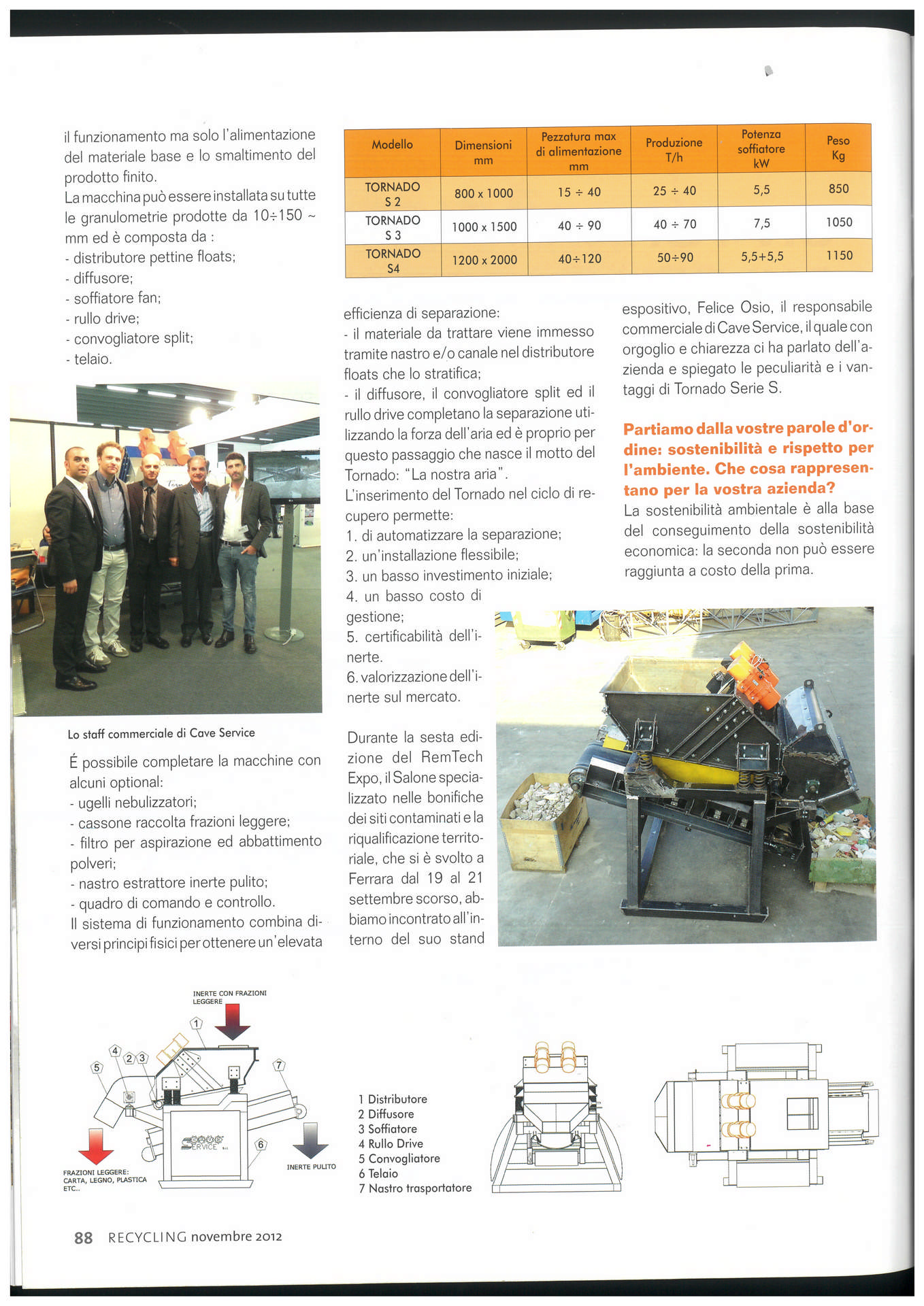 Nel 2012 presentiamo ad INERTIA ( fiera nazionale del riciclaggio inerti) il TORNADO , figlio del BLOWER, brevettato anch’esso.