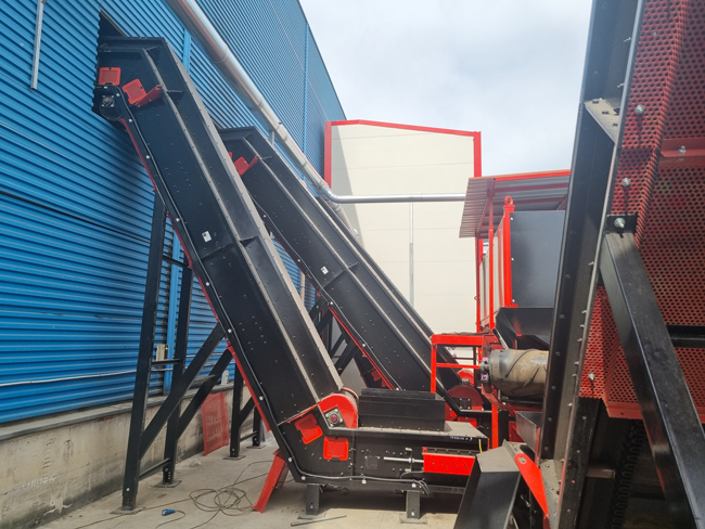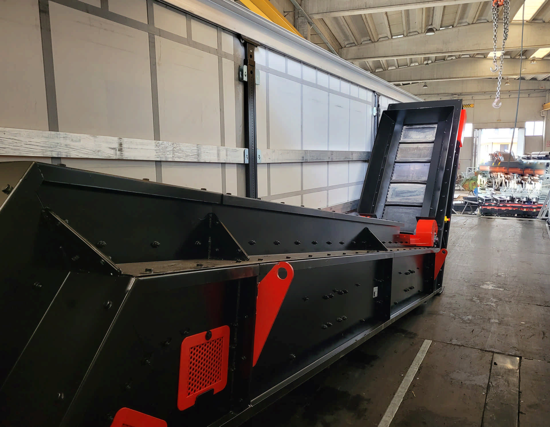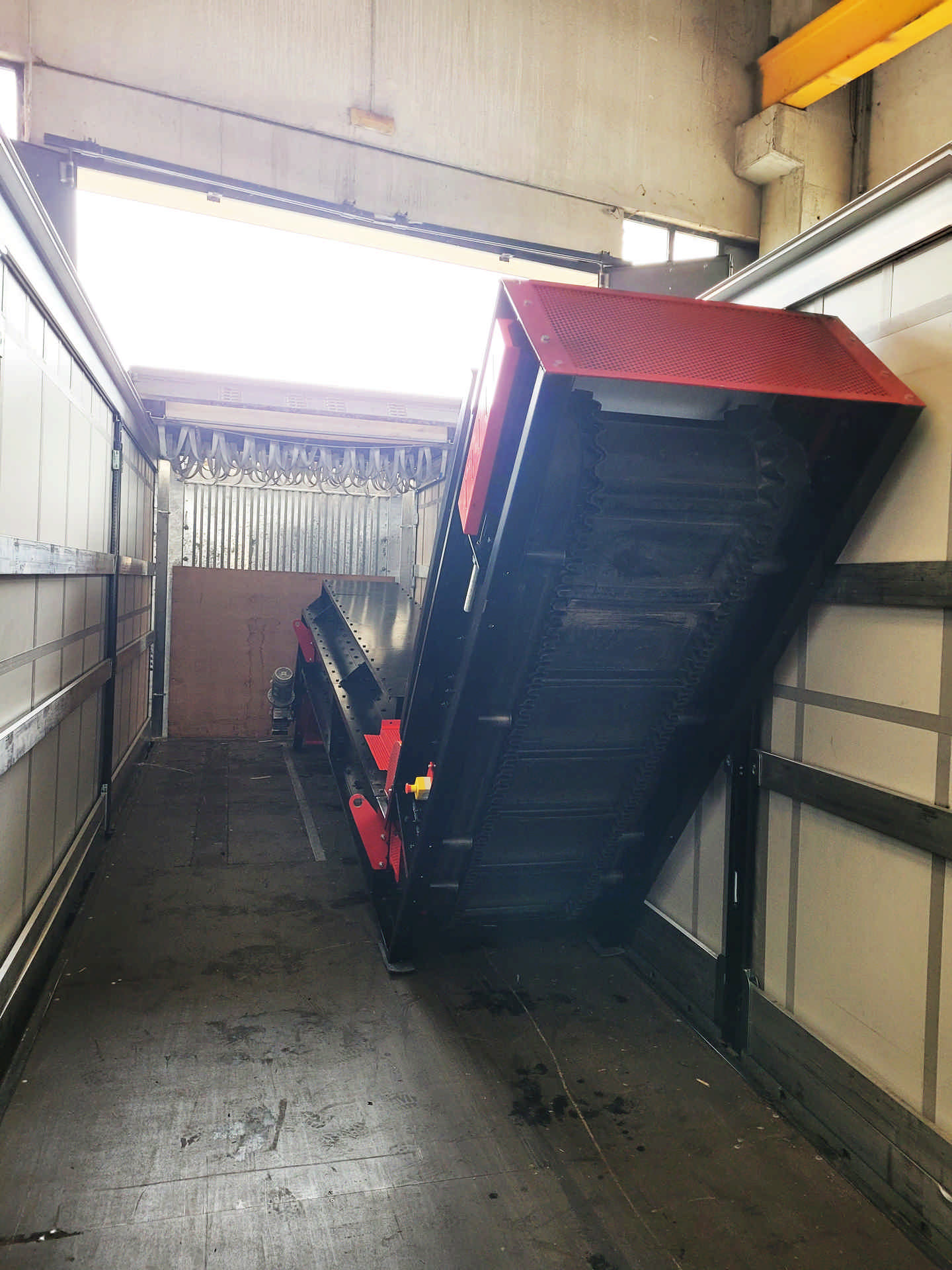 Ogni nastro a doppio collo d’oca è fornito con telo dotato lateralmente di guide in gomma e bordi ondulati e tazze orizzontali in posizione centrale per permettere un’efficiente trasporto del materiale anche con inclinazioni elevate.